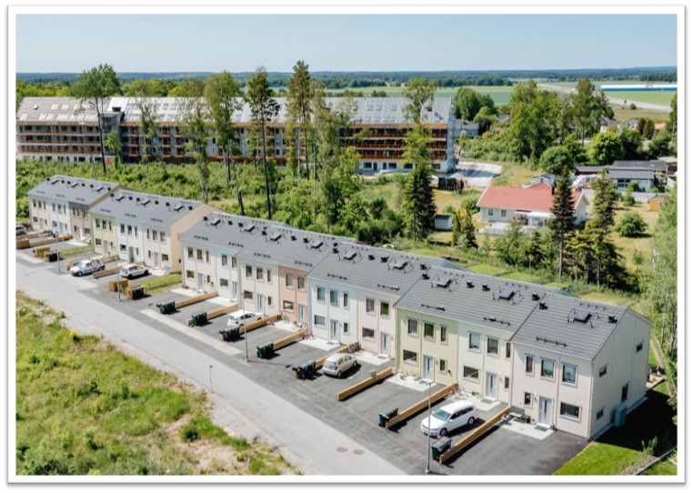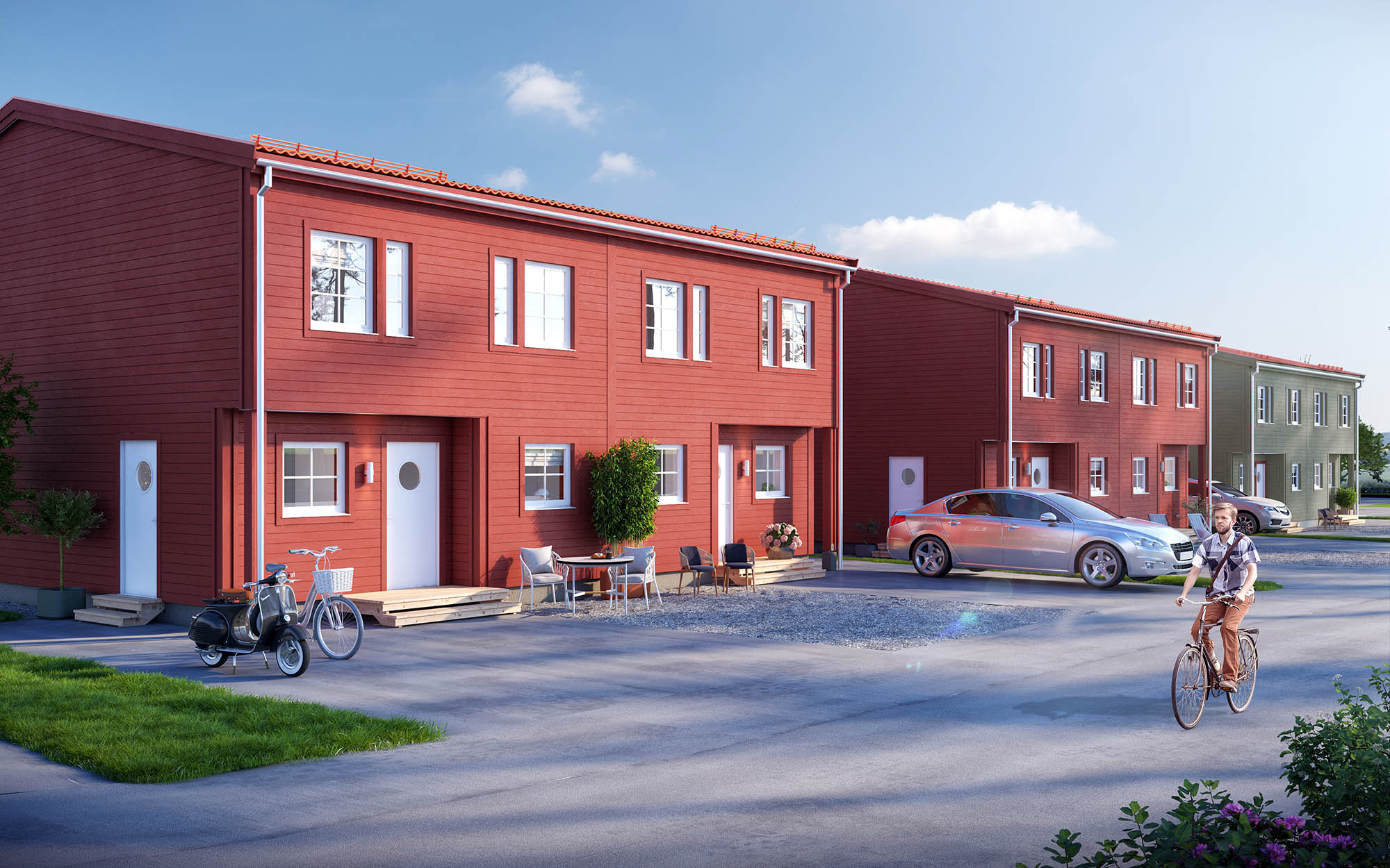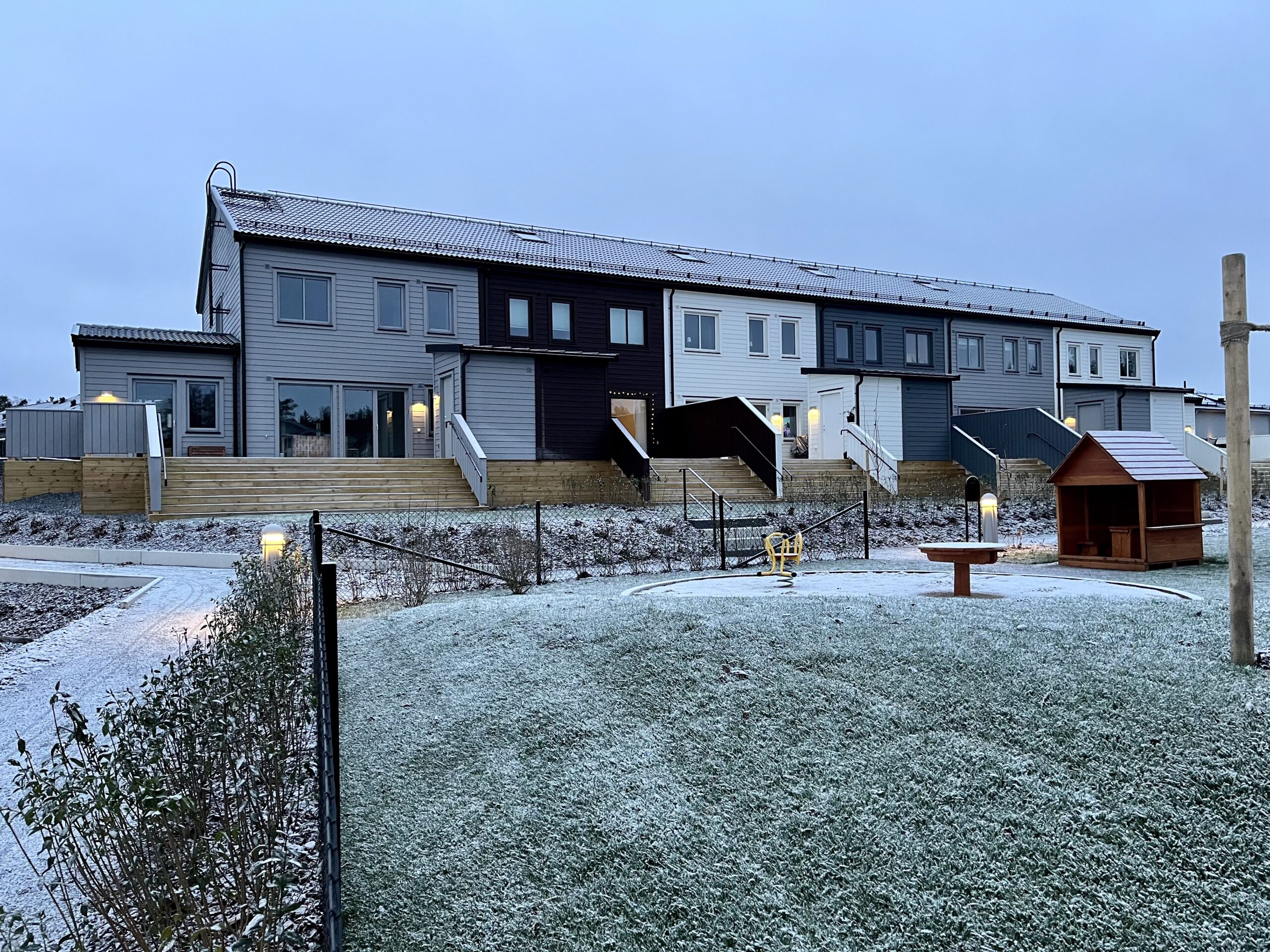 Vikhems Torg omfattar 12 friköpta radhus. Radhusen genomfördes i samarbete med LB Hus som delar projektets visioner och har lång erfarenhet av att bygga hållbara bo-